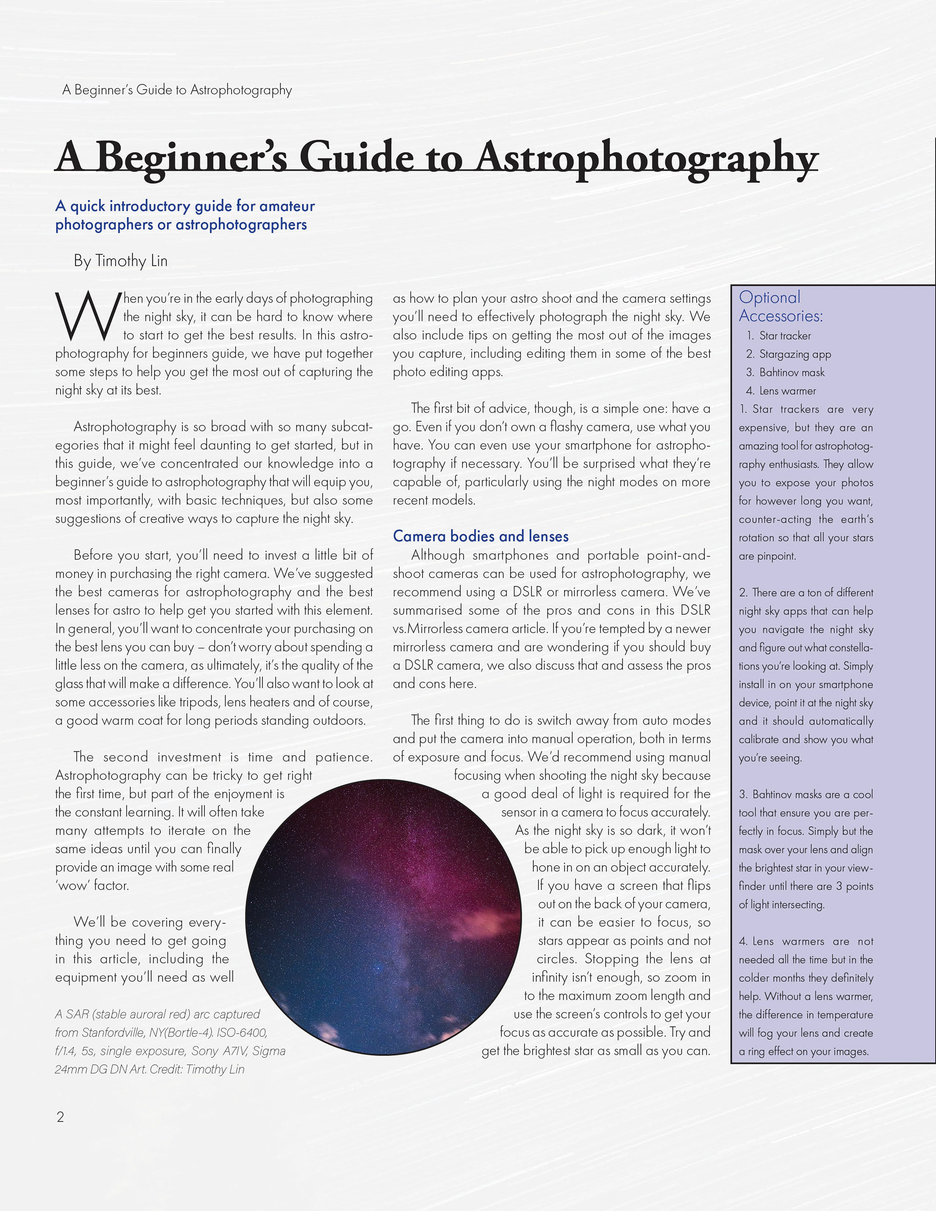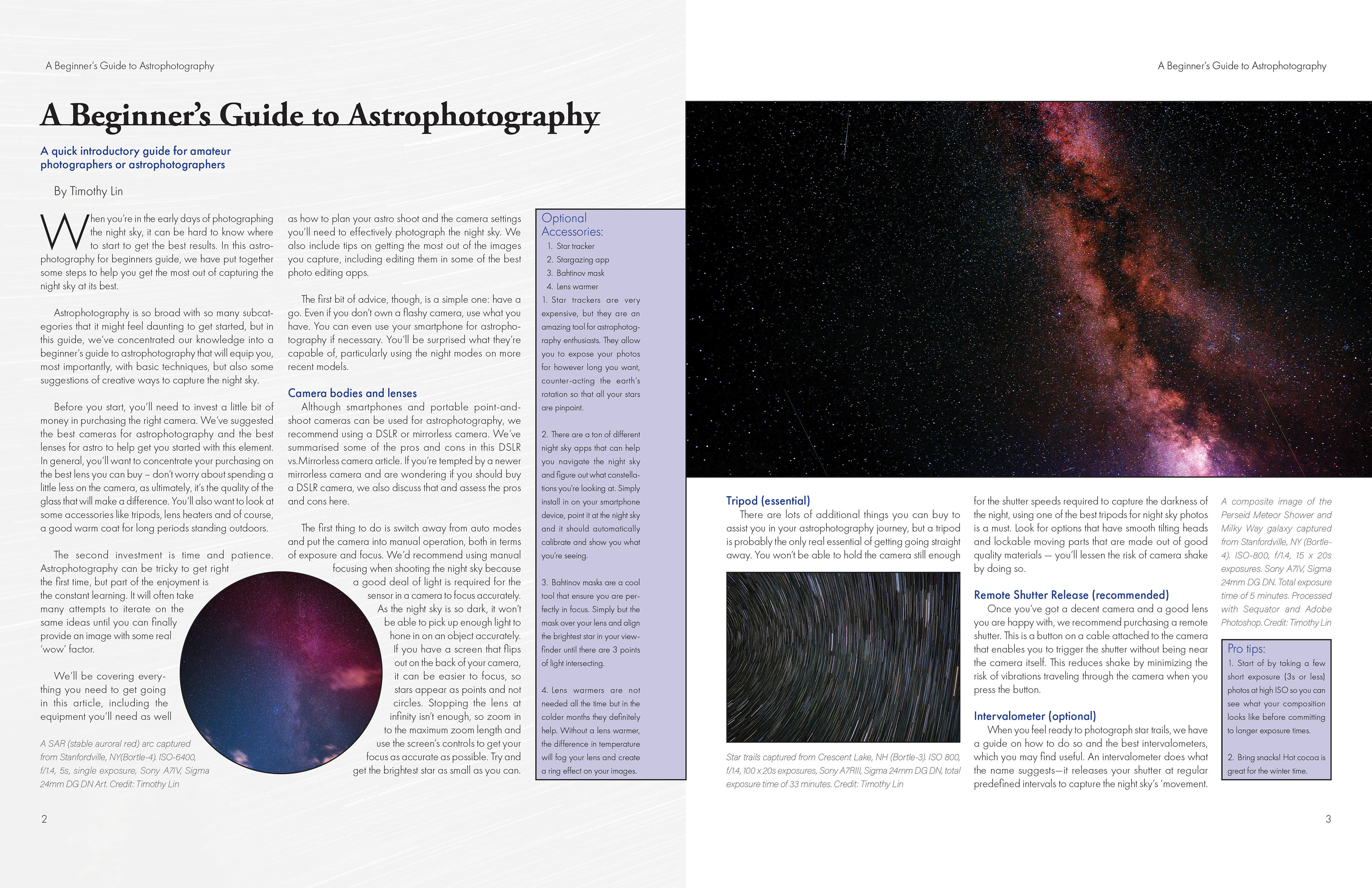 This project was to create a professional 2 page spread with photos and text. Astrophotography has been a hobby of mine for quite some time now so I thought it would be fitting to have that be the main focus. All of the photos in the article were photographed with my Sony mirrorless camera.